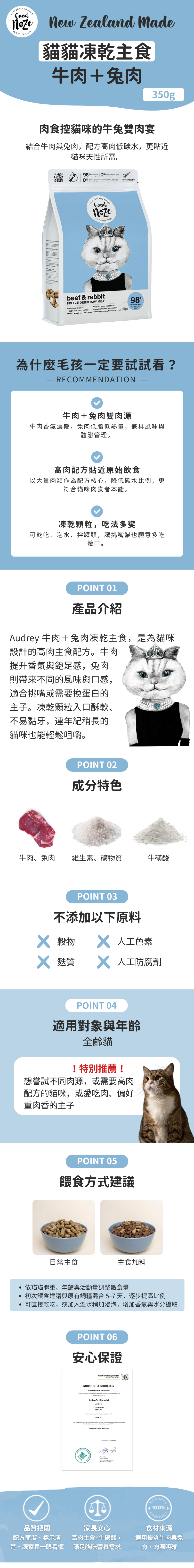 紐西蘭 Goodnoze|貓咪凍乾主食【牛肉+兔肉】350g