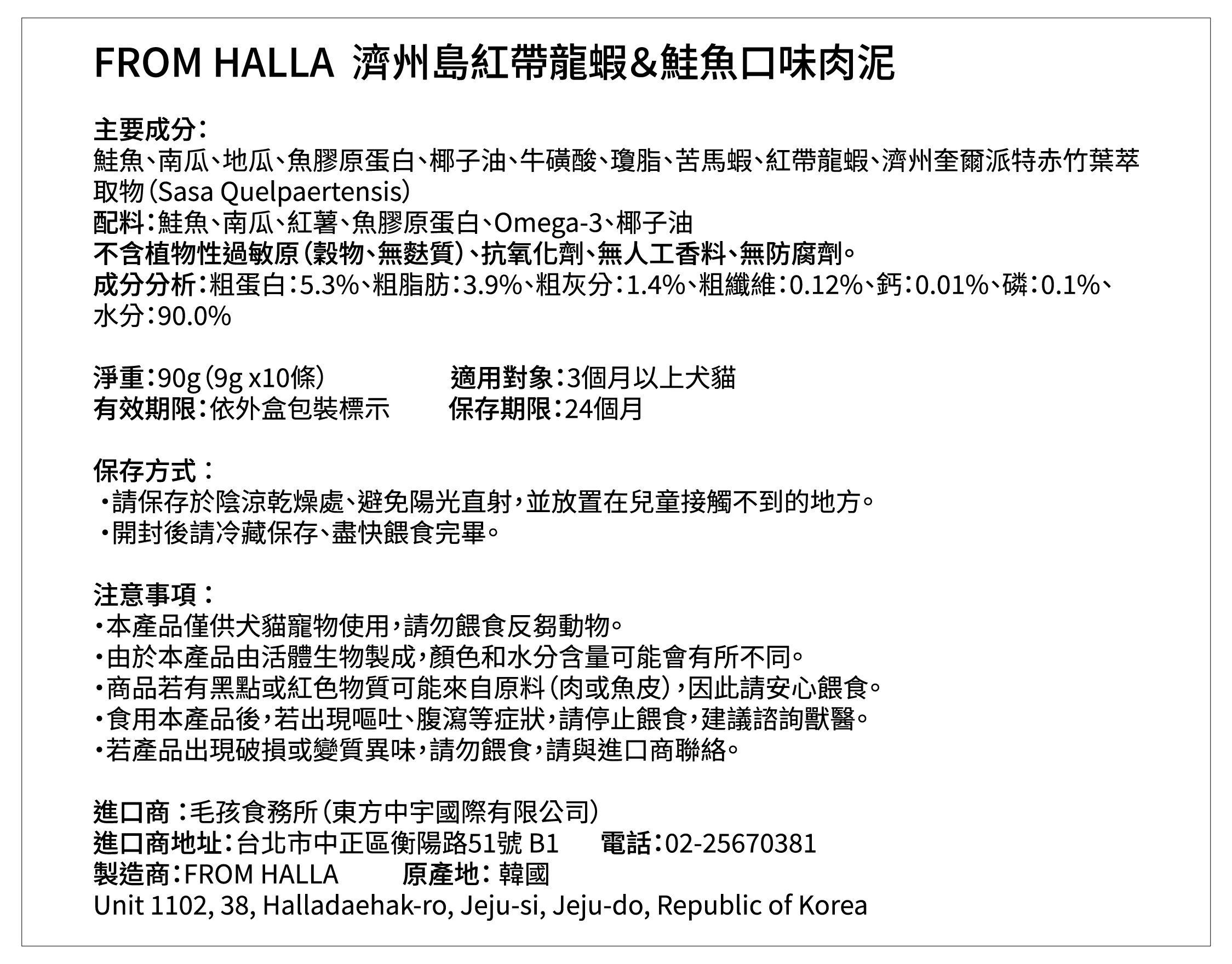 韓國FROM HALLA|濟州島機能肉泥【紅帶龍蝦&鮭魚】10入
