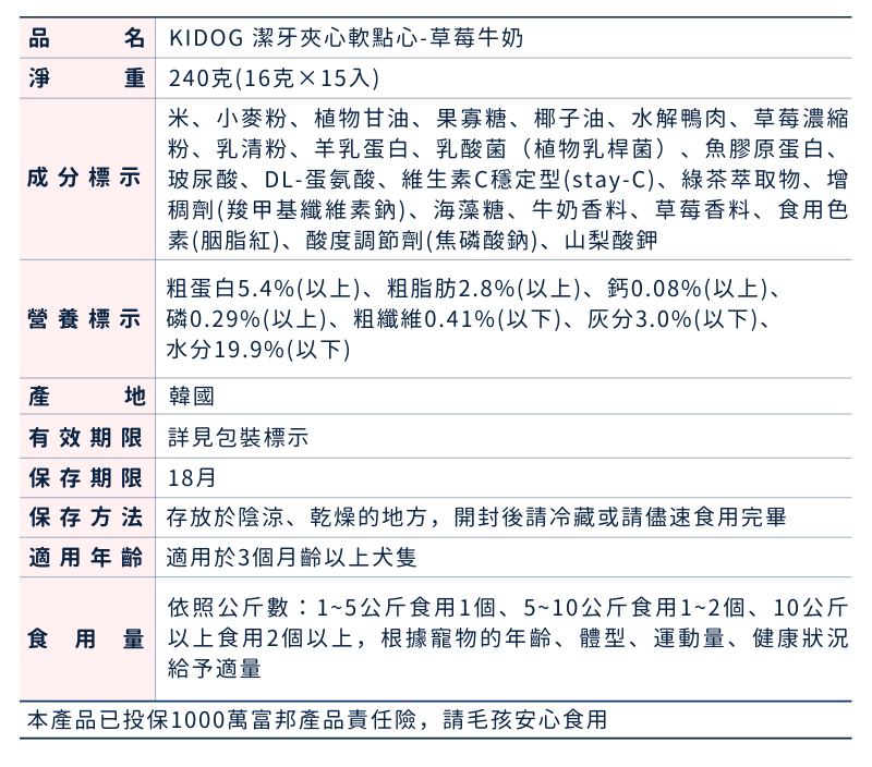 韓國 KIDOG|潔牙夾心軟點心-草莓牛奶